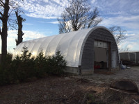 There are only 3 limitations with Span-Tech hoop shelters - widths are limited to those sizes presently manufactured some practical height limitations and your imagination. 30x40x15 Peak TMG PE Canvas Fabric Storage Building HOOP BARN Shelter. Prices are for materials only.